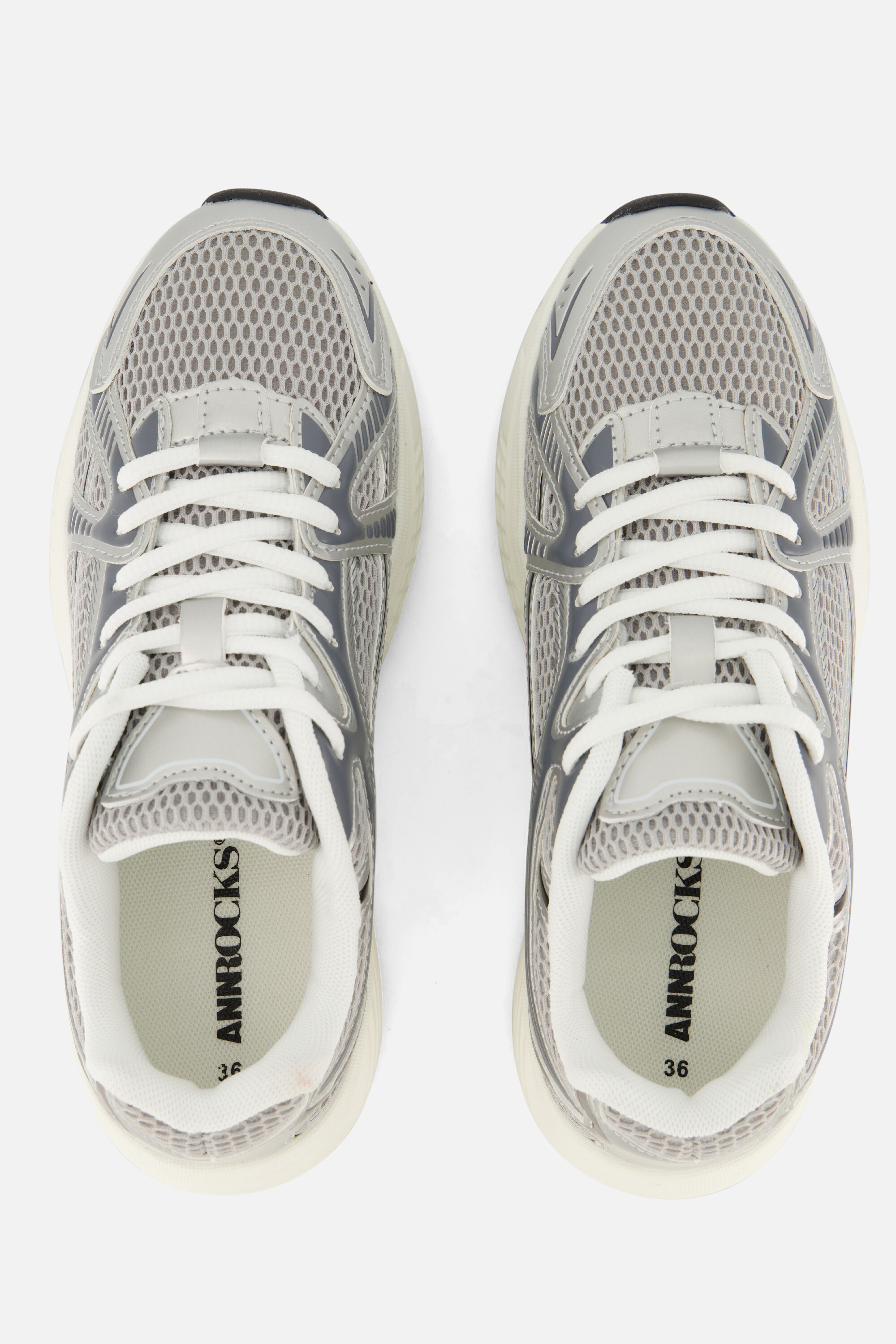 Deze Ann Rocks sneakers zijn volledig gemaakt van textiel. De sneakers hebben een vast voetbed en een vetersluiting. De stevige zool is gemaakt van rubber en heeft een hakhoogte van 3 centimeter.