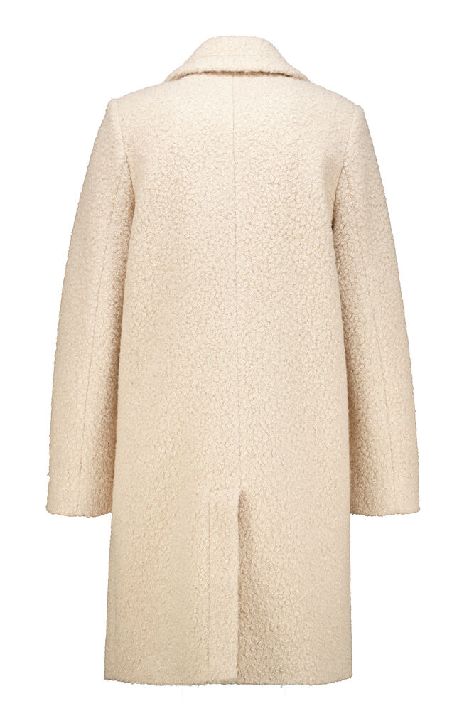 Stijlvolle mantel van teddy. Deze jas heeft lange mouwen, een oversized kraag met stiksels, paspelzakken, een knoopsluiting en een regular fit. Verder heeft deze jas een lengte tot boven de knie en een split aan de achterzijde, wat zorgt voor een klassieke uitstraling met een moderne twist. De buitenlaag van deze jas is gemaakt van 100% polyester.