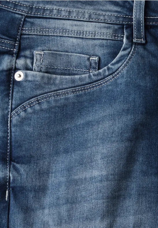 Deze 7/8 jeans van CECIL voor dames heeft een Slim Fit en een High Waist. Het omgeslagen detail voegt een modieus accent toe. De stretch katoenmix maakt hem comfortabel om te dragen.