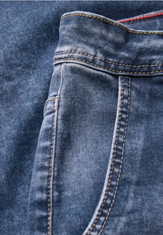 Met modieuze opgestikte zakken en een wijde pijp geeft deze jeans van CECIL voor dames een frisse wind aan je denimlook. De Loose Fit met hoge taille maakt hem comfortabel om te dragen, terwijl de stretch in de katoenmix flexibiliteit biedt. De blauwe wassing rondt de casual stijl af.