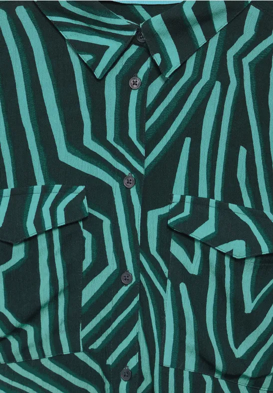 CECIL damesblouse met opdruk en zakken, lichte blouse, overhemdkraag, korte mouwen, borstzakken, zachte viscose kwaliteit