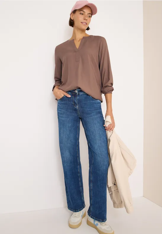 Deze CECIL blouse voor dames heeft een split in de hals en een Stretch zoom voor een losse pasvorm. De lange mouwen met knoopmanchetten en de zachte viscosestof zijn zeer comfortabel om te dragen. Een veelzijdig stuk voor dagelijks gebruik en op kantoor.