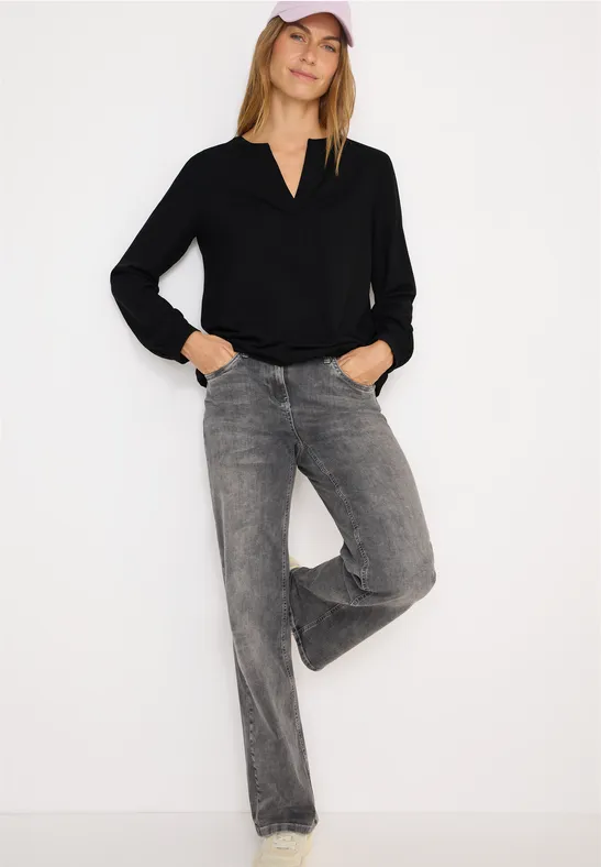 Cecil Dames Blouse met gespleten hals in Zwart, Gr: 3XL