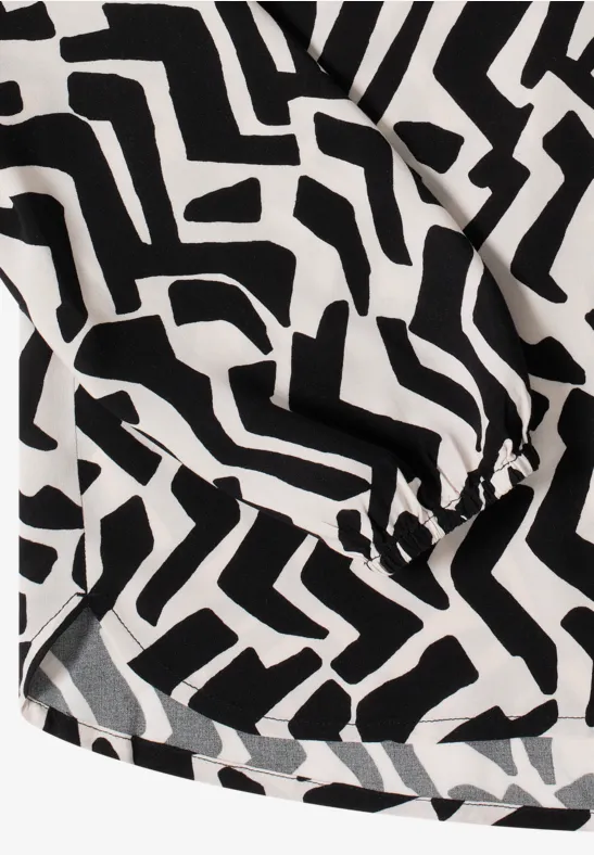 Deze blouse met grafisch patroon van CECIL voor dames heeft zachte viscose en een klassieke ronde hals met een knoopsluiting. De afgeronde zoom en lange mouwen met elastische manchetten zorgen voor een comfortabele pasvorm. Een stijlvol stuk voor elke dag.