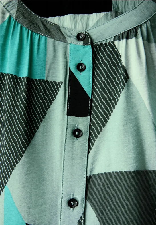 Deze blouse met grafisch dessin van CECIL voor dames heeft een ronde halslijn en lange mouwen met manchetten. De aangename viscosemix zorgt voor optimaal comfort en de afgeronde zoom rondt de look perfect af.