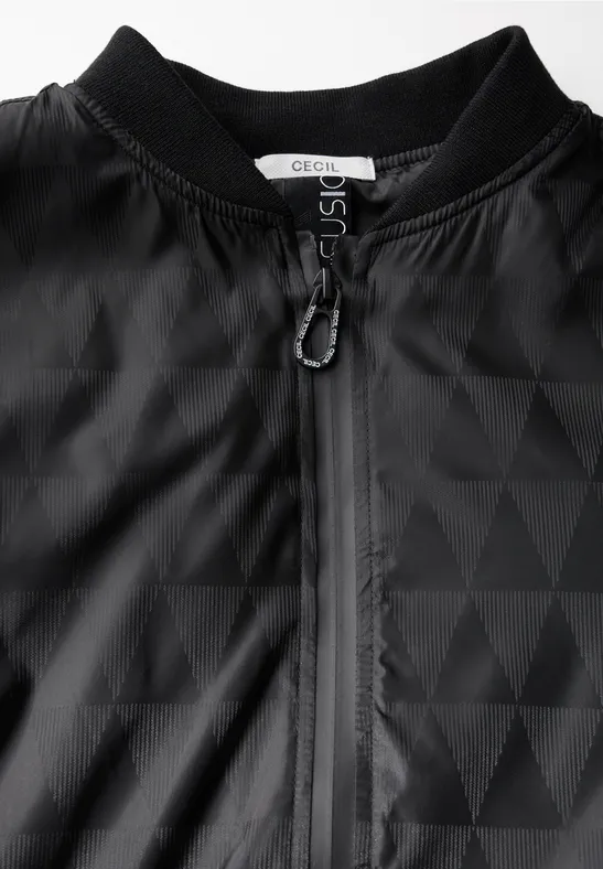 De jacquard blouson van CECIL voor dames voegt met zijn grafische patroon een modieus accent toe aan je garderobe. De opstaande kraag en zijzakken met ritssluiting zorgen voor een sportieve, elegante look. Lange mouwen en manchetten ronden de look af.