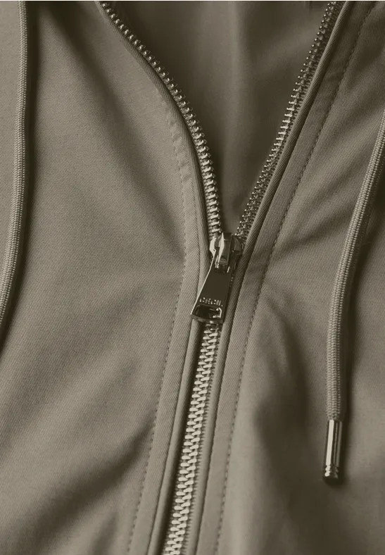 De blouson met capuchon van CECIL voor dames valt op door zijn sportieve look. De capuchon met trekkoord, elastische manchetten aan de mouwen en elastische zoom bieden je een ontspannen pasvorm. De comfortabele katoenmix maakt dit jack perfect voor casual looks.