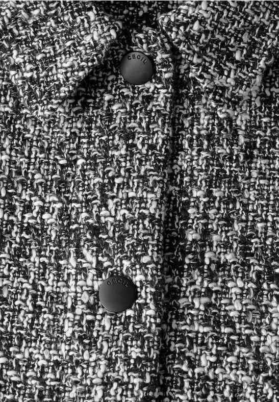 Het boucle overshirt van CECIL voor dames met een casual overhemdkraag en zijsplitten voor een relaxte look. Zijzakken en knopen op de manchetten maken het geraffineerde ontwerp compleet. Perfect voor modieuze laagjes op koelere dagen.