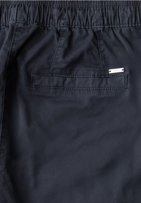 Deze damesbroek van CECIL maakt indruk met zijn ontspannen Loose Fit en Mid Waist. De opgestikte zakken en de elastische tailleband met trekkoord zorgen voor een casual look. De katoenmix met stretch maakt hem bijzonder comfortabel.