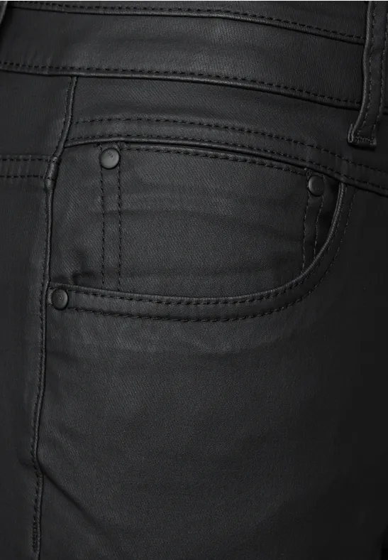 Deze gecoate damesbroek in slim fit van CECIL creëert een aansluitend silhouet met zijn hoge taille en smalle pijpen. Het 5-pocket-design en de hoogwaardige gecoate twill-stof geven deze broek een trendy look. De materiaalmix met stretch maakt Style Vicky bijzonder comfortabel en stijlvol.