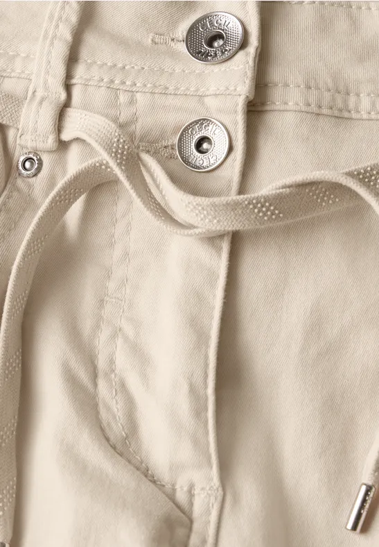 De casual broek Scarlett van CECIL voor dames combineert een Mid Waist met taps toelopende pijpen voor een moderne pasvorm. Het trekkoord in de tailleband en de katoenmix met stretch zorgen voor een comfortabele pasvorm.