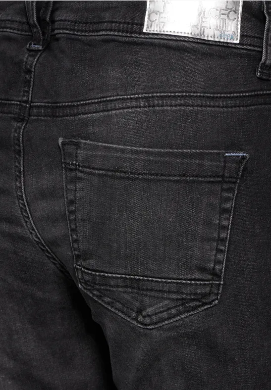 CECIL damesjeans casual fit, jeansbroek in washed look, middellange taille met slanke pijp, twee knopen en ritssluiting, 5-pocket, materiaalmix met stretchgehalte