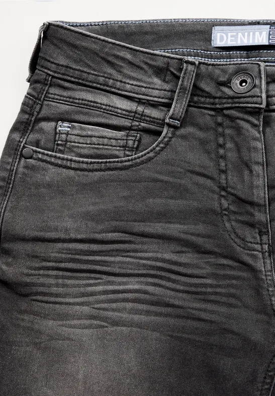 De casual jeans van CECIL voor dames is de ideale metgezel voor veelzijdige alledaagse looks dankzij de comfortabele katoenmix met stretch. De zwarte wassing en 5-pocketstijl maken de look compleet, terwijl de middellange taille en slanke pijpen zorgen voor een comfortabele pasvorm.