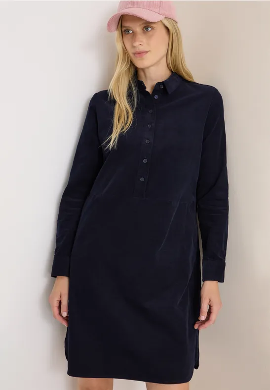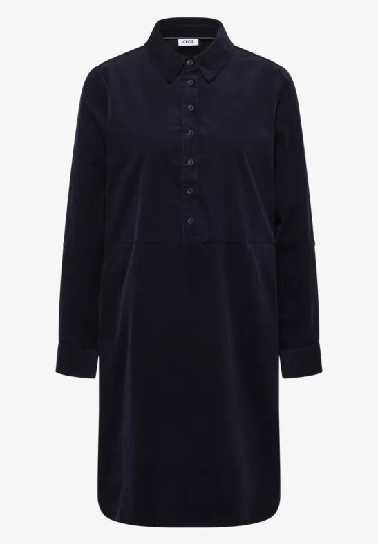Deze effen corduroy jurk van CECIL voor dames is gemaakt van puur katoen en voelt aangenaam zacht aan. De overhemdkraag, 3/4-mouwen met omslagfunctie en decoratieve knoopsluiting geven de knielange jurk een casual look. De steekzakken maken het comfortabele ontwerp praktisch af.