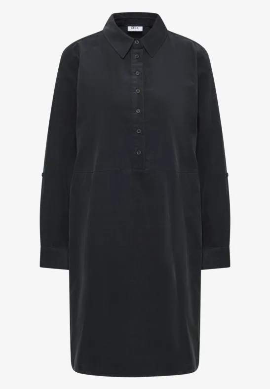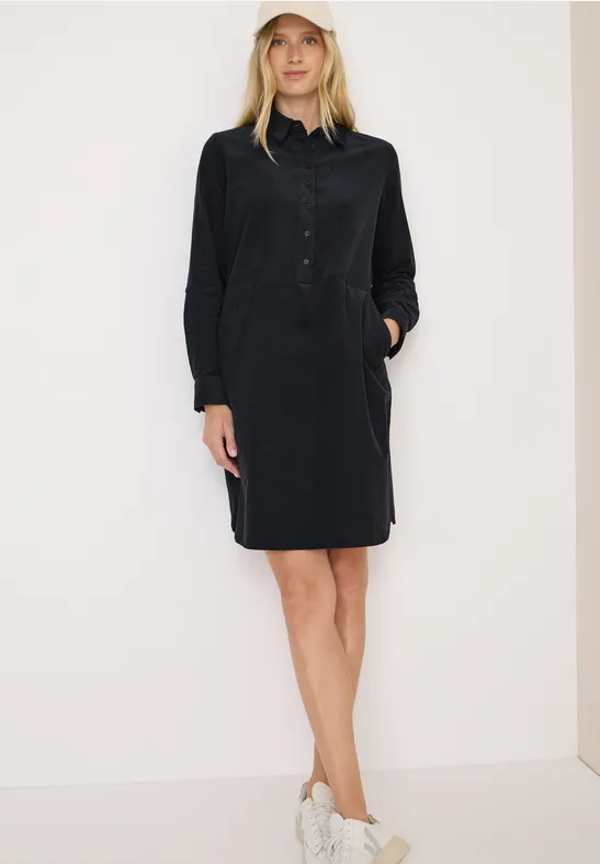 Deze effen corduroy jurk van CECIL voor dames is gemaakt van puur katoen en voelt aangenaam zacht aan. De overhemdkraag, 3/4-mouwen met omslagfunctie en decoratieve knoopsluiting geven de knielange jurk een casual look. De steekzakken maken het comfortabele ontwerp praktisch af.