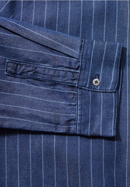 De CECIL lyocell jurk voor dames is een elegant stuk voor vele gelegenheden. De knielange jurk heeft een overhemdkraag met een decoratieve knoopsluiting en steekzakken. De 3/4-mouwen en zijsplitten geven de jurk een luchtig gevoel.