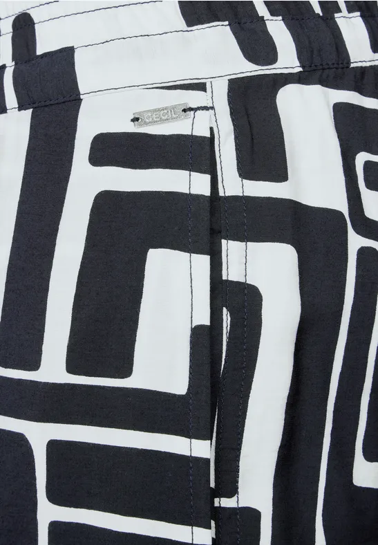Deze damesbroek van CECIL maakt indruk met een modieus patroon en een comfortabele Wide Legs pasvorm. De High Waist en de elastische tailleband met trekkoord zorgen voor een nonchalante pasvorm. De lichtgewicht viscosemix is comfortabel om te dragen.