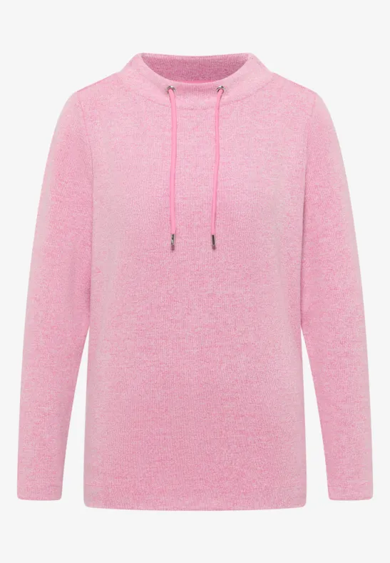 Cecil Dames Gemêleerd geribd overhemd met trechtervormige hals in Roze, Gr: M