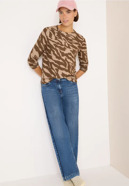 Dit gemêleerde Shirt van CECIL voor dames heeft een trendy dierenprint en een behaaglijke viscosemix met stretch. De ronde hals en lange mouwen zorgen voor een comfortabele pasvorm. Ideaal voor een modieuze, feel-good look.