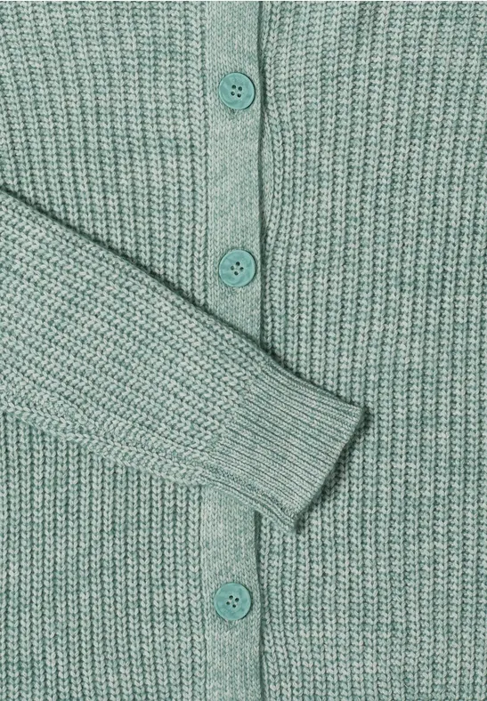 Dit gemêleerde vest van CECIL voor dames heeft een comfortabele katoenmix en een klassieke look. De ronde hals, knoopsluiting en lange mouwen maken het een veelzijdig stuk voor elke dag. Perfect voor gezellige en ongecompliceerde outfits.