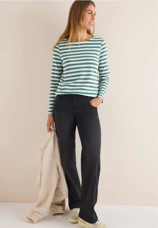 Dit gestreepte basic Shirt van CECIL voor dames heeft een klassieke boothals en een fris streeppatroon. Dankzij het zuivere katoen is het comfortabel om te dragen. Ideaal voor ongecompliceerde alledaagse looks met een maritieme flair.
