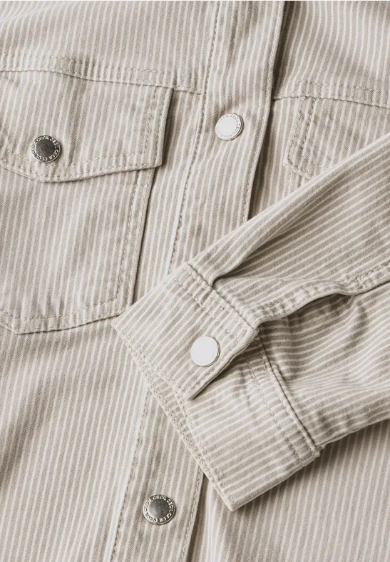 Dit gestreepte denim overshirt van CECIL voor dames brengt casual charme aan je look met een overhemdkraag en borstzakken. De katoenmix met stretch zorgt voor een comfortabele pasvorm. Dit lichtgewicht jack wordt je nieuwe lievelingsstuk.