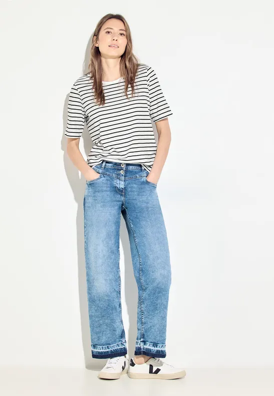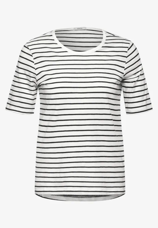 CECIL dames-T-shirt, ronde hals, katoen, gestreept patroon, effectgaren-look