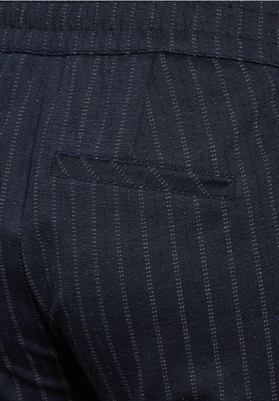 Deze casual fit broek van CECIL voor dames is een modieuze blikvanger. Deze broek in krijtstreeplook heeft een middellange taille en slanke pijpen. Een elastische tailleband en steekzakken zorgen voor draagcomfort, terwijl de gemetalliseerde vezels glinsterende accenten toevoegen.