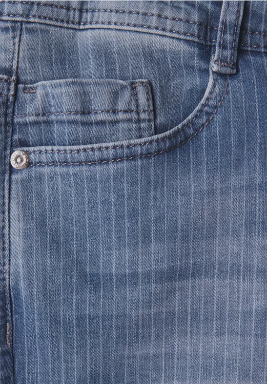 Deze damesjeans in Scarlett-stijl van CECIL geeft je garderobe een modieuze update met het fijne streeppatroon en de Slim Legs. De Mid Waist zorgt voor een comfortabele pasvorm. Het gemêleerde materiaal met stretch biedt aangenaam comfort.