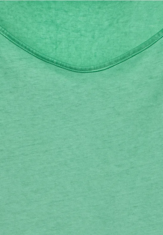 CECIL damestop van gewassen jersey, zomertop met gewassen effect, afgeronde V-hals, decoratieve plooien op de bandjes, zuiver katoen, klein wordingdetail