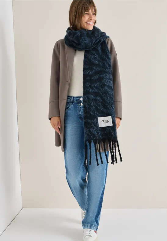Deze CECIL sjaal voor dames voegt een stijlvol accent toe aan je outfit met zijn grafische patroon en modieuze franjes. De zachte, behaaglijke stof zorgt voor aangename warmte - perfect voor koude dagen met een modieuze flair.