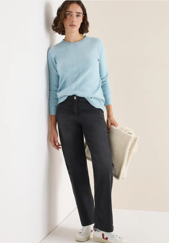 Deze knusse gebreide trui van CECIL voor dames zal je bekoren met zijn zachte stof en comfortabele gevoel. De gestructureerde details en de klassieke ronde hals geven hem een stijlvolle touch. Een ideale metgezel voor ontspannen looks met een feel good-factor.