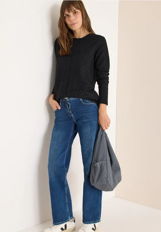 Deze knusse gebreide trui van CECIL voor dames zal je bekoren met zijn zachte stof en comfortabele gevoel. De gestructureerde details en de klassieke ronde hals geven hem een stijlvolle touch. Een ideale metgezel voor ontspannen looks met een feel good-factor.