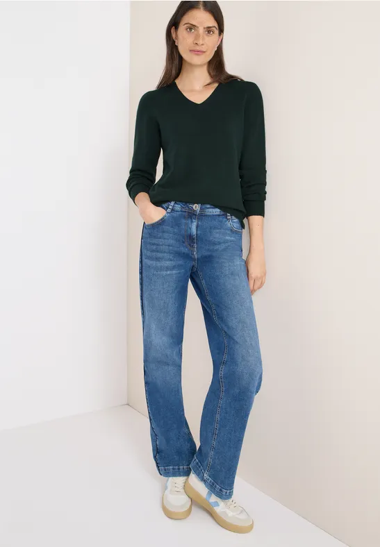 Met zijn zachte katoenmix en vrouwelijke V-hals is deze gebreide trui van CECIL voor dames een echte feelgood-favoriet. De zachte stof maakt hem bijzonder comfortabel om te dragen. Ideaal voor ontspannen looks met een stijlvolle touch.