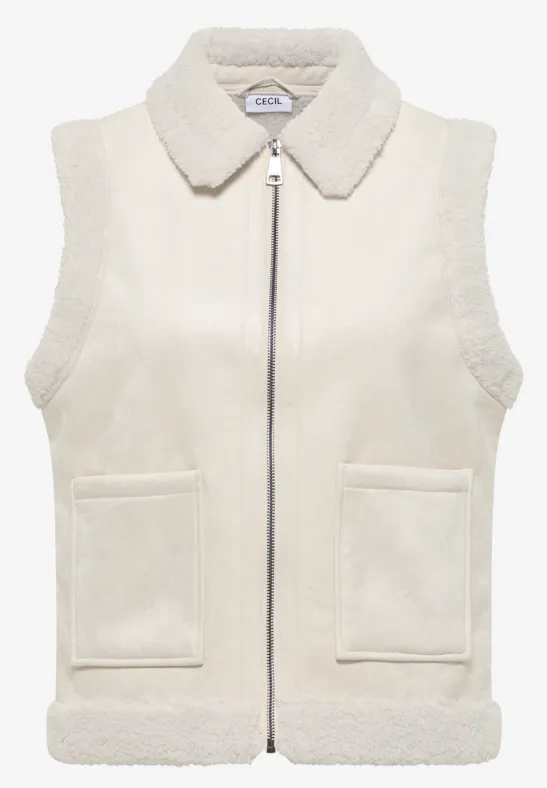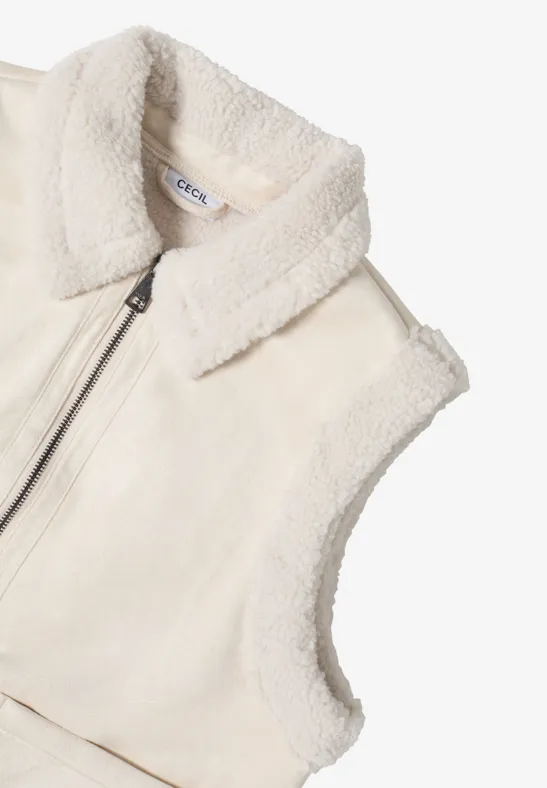 Het velours gilet van CECIL voor dames maakt indruk met zijn knusse teddyvoering en charmante details. Opgestikte zakken, een overhemdkraag en ritssluiting onderstrepen de modieuze look. Een knus stuk dat warmte biedt en op verschillende manieren gecombineerd kan worden.