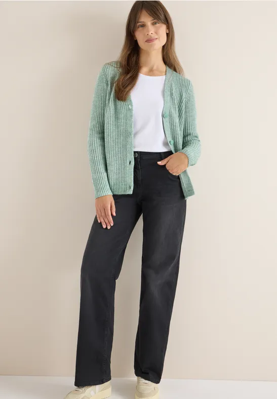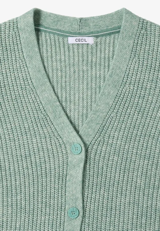 Het grof gemêleerde vest van CECIL voor dames geeft je look een modieuze gebreide charme met zijn V-hals en grove textuur. De knoopsluiting en de knusse katoenmix zorgen voor comfort en veelzijdigheid. Ideaal voor gezellige laagjesoutfits.