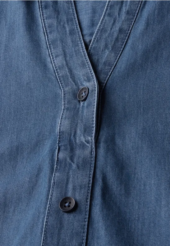 Deze knielange blousejurk van CECIL voor dames heeft een casual denimlook en is zeer comfortabel om te dragen. De overhemdkraag, knoopsluiting over de hele lengte en 3/4-mouwen zorgen voor een klassieke look. Zijzakken ronden de look van de jurk af.