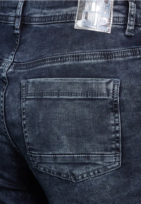 Deze jeans met rechte pijpen van CECIL voor dames heeft een hoge taille en een slanke pasvorm. De zwart-blauwe wassing en 5-pocketstijl maken de look compleet. De katoenmix met stretch zorgt voor een hoog draagcomfort.