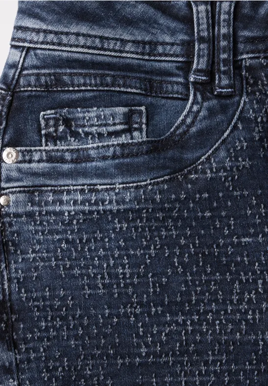 Deze jeans met wijde pijpen van CECIL voor dames in bouclelook combineert een hoge taille en wijde pijpen met modieuze flair. De katoenmix met stretch zorgt voor een comfortabele pasvorm in een klassieke 5-pocketstijl.