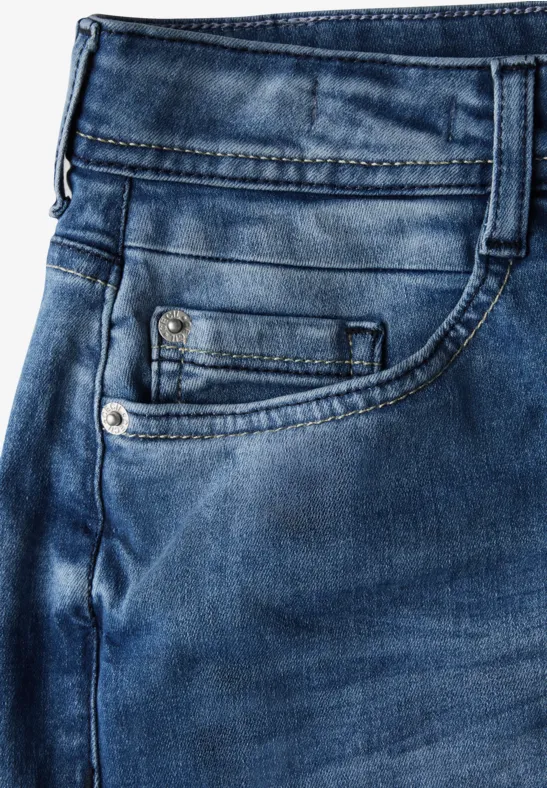 Deze jeans met wijde pijpen van CECIL voor dames heeft een modern silhouet en een comfortabele losse pasvorm. De hoge taille en wijde pijpen maken ze een gezellige en modieuze metgezel voor je dagelijkse looks. De blauwe wassing geeft ze een klassieke denimlook, terwijl de katoenmix met stretch zorgt voor draagcomfort.