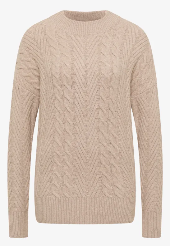 Deze gebreide trui van CECIL voor dames zet modieuze accenten met zijn col en klassieke kabelpatroon. De zachte katoenmix heeft een hoog draagcomfort en is de ideale metgezel op koelere dagen. Een knusse look met een stijlvol gebreid karakter.