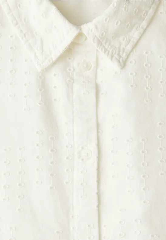 Deze knielange jurk van CECIL voor dames zal je betoveren met het modieuze eyeletborduursel en de zomerse volants. De overhemdkraag en 3/4-mouwen voegen klassieke accenten toe. Dankzij het zuivere katoen is hij comfortabel om te dragen.