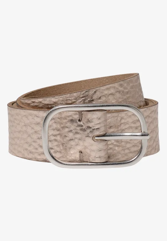 De leren riem van CECIL voor dames valt op door zijn glinsterende oppervlak en ovale gesp. Een stijlvol accessoire dat elke outfit een geraffineerde touch geeft. Ideaal voor speciale gelegenheden en moderne looks.
