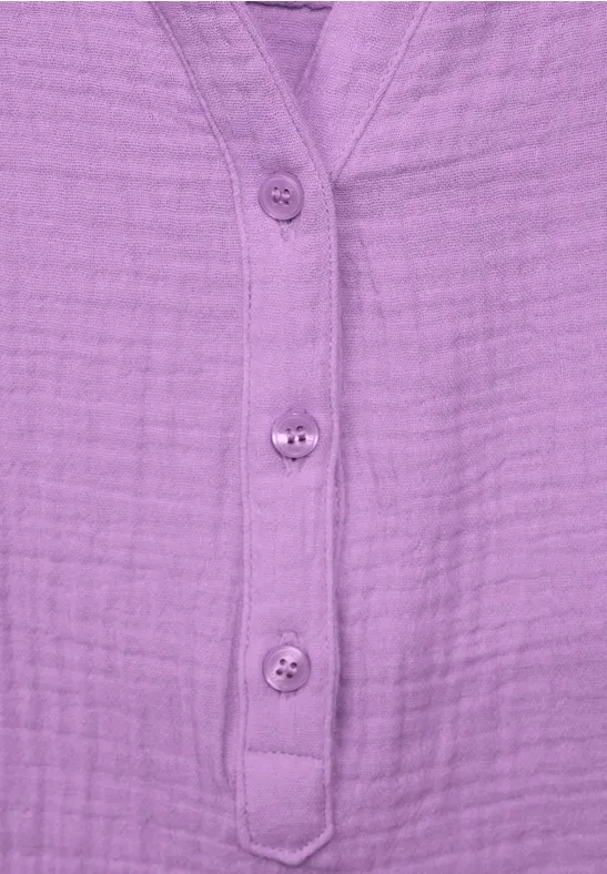 CECIL, mousseline blouse, blouseshirt met structuur, ronde hals met split en knooppas, praktische turn-up-mouwen, van katoen, vloeiend en ademend