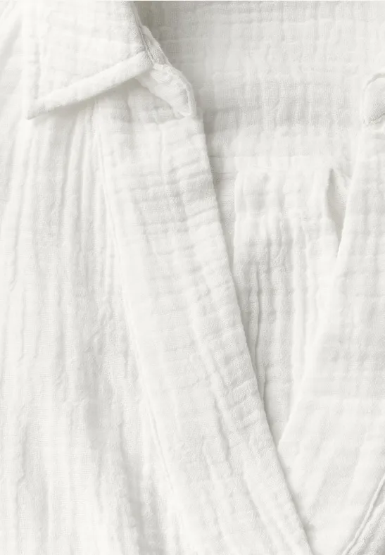 De mousseline blouse van CECIL voor dames is gemaakt van puur katoen en is uiterst comfortabel om te dragen. De overhemdkraag, 3/4-mouwen en afgeronde zoom geven de blouse een ontspannen look en maken hem de ideale metgezel voor modieuze casual looks.
