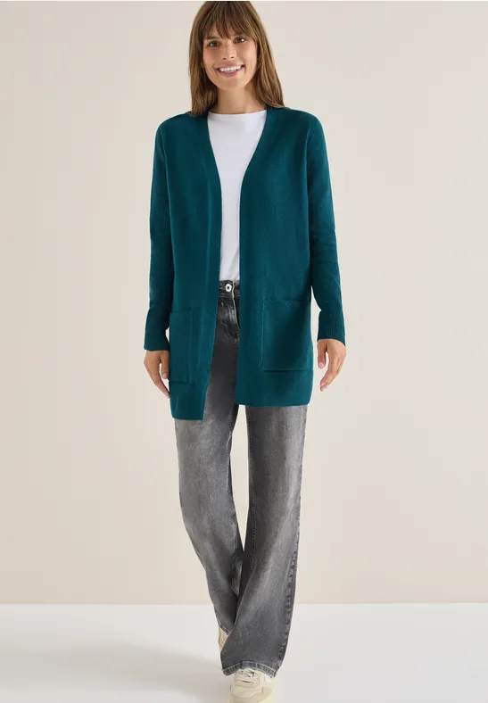 Dit lange vest van CECIL voor dames nodigt je uit om je goed te voelen dankzij de zachte stof. Open om te dragen, met lange mouwen en opgezette zakken, is het de perfecte metgezel voor gezellige gelaagde looks. Gezellig en ongecompliceerd - ideaal voor elke dag.
