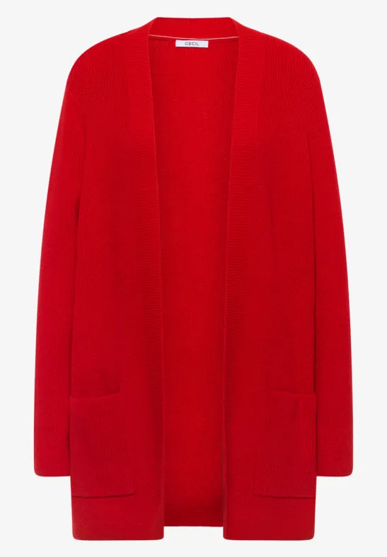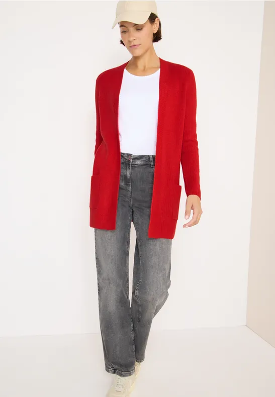 Dit open vest van CECIL voor dames heeft een fijne textuur en een casual snit. Opgestikte zakken en een zachte katoenmix met stretch maken het tot een knus laagjesvest. Een ongecompliceerde metgezel voor gezellige looks.