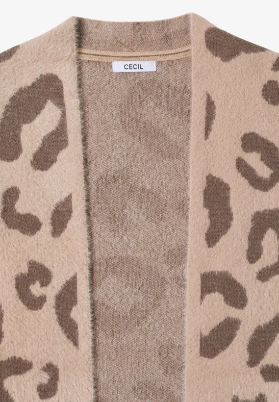 Dit open vest van CECIL voor dames heeft zacht verengaren en een trendy luipaardpatroon. Het kan open gedragen worden en heeft lange mouwen, waardoor het perfect is voor casual gelaagde looks. Een comfortabele favoriet voor elke dag.