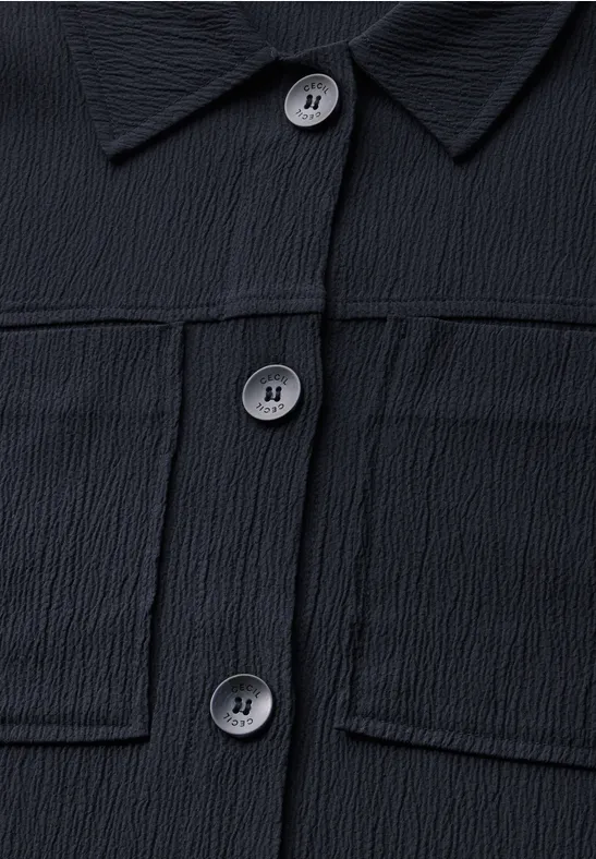 Het CECIL overshirt voor dames combineert een moderne structuur met een klassieke overhemdkraag. Borstzakken en een afgeronde zoom benadrukken de casual look. De materiaalmix met stretch zorgt voor een hoog draagcomfort.