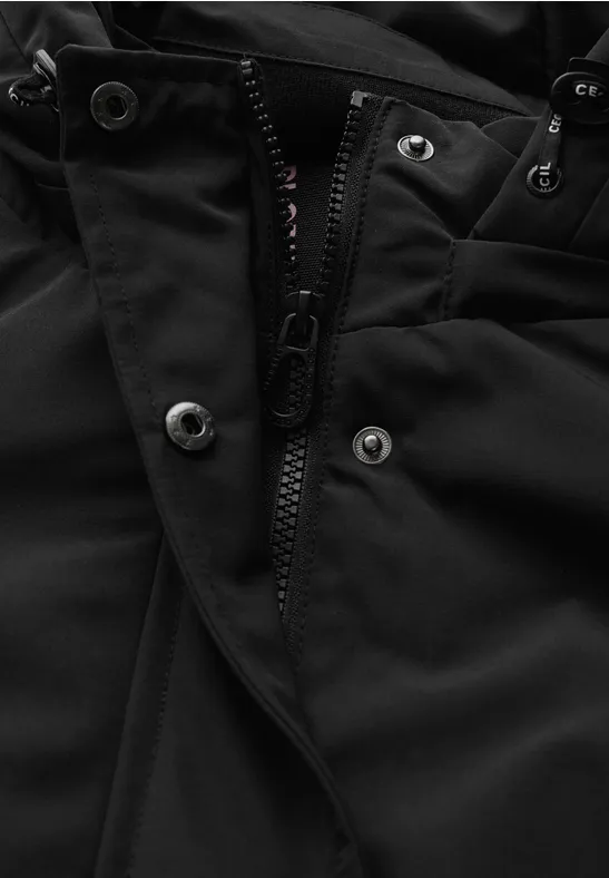 De sportieve parka van CECIL voor dames is de ideale metgezel voor koude dagen omdat hij aangenaam warm is. Met zijn afneembare capuchon met trekkoord en gevoerde zijzakken met ritssluiting biedt hij praktisch comfort. De ritsdetails ronden de look af.